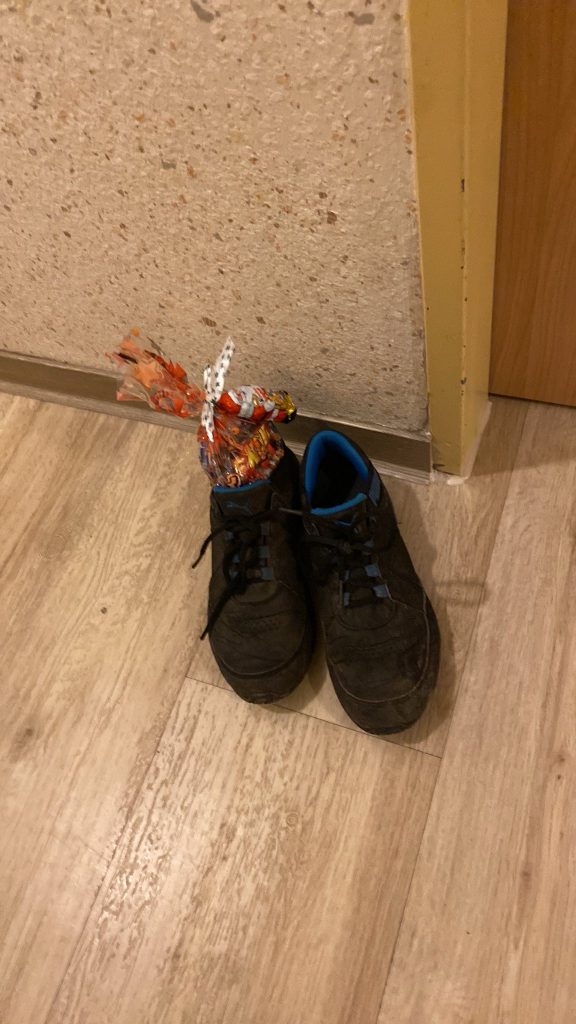 Am Morgen des 6. Dezembers haben sich viele Jungen über gefüllte Schuhe vom Nikolaus gefreut. Die Freude war groß und die Schokolade sehr lecker. So hat sich das Schuheputzen am Vortag auch gelohnt.